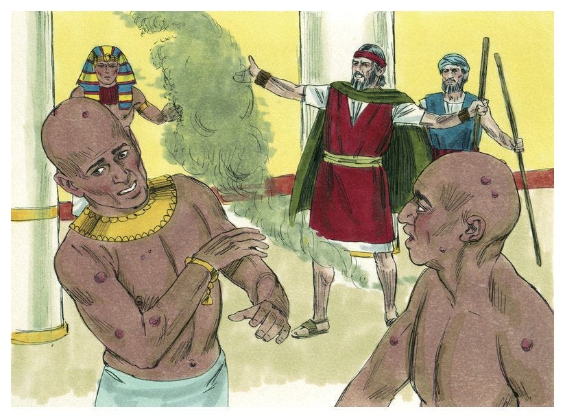 A plague akin to the 10 used to judge Amenhotep when he would not release the people of Israel. Only, this time, the head of the snake alone was the victim.