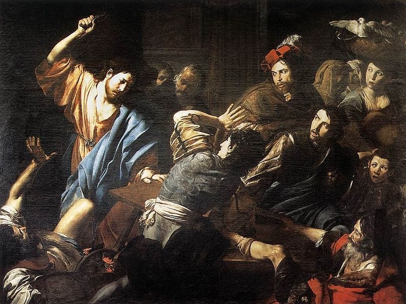 โChrist Driving the Money Changers Out of the Templeโ Valentin de Boulogne (1591-1632)